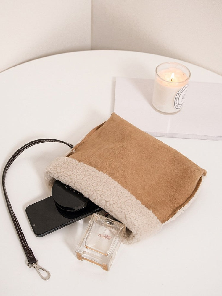This cozy plush tote features vintage-inspired bamboo knot details, offering a perfect blend of retro elegance and practical spaciousness for autumn and winter. details, offering a perfect blend of retro elegance and practical spaciousness for autumn and winter.
