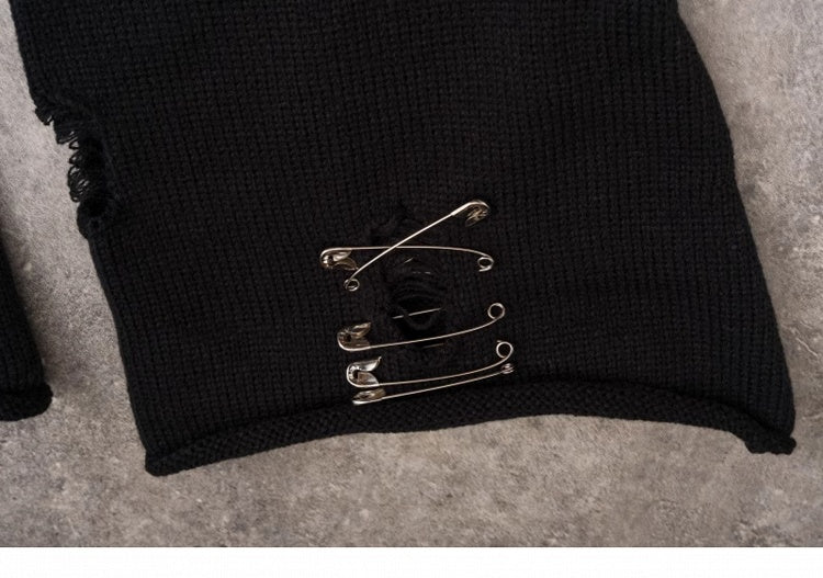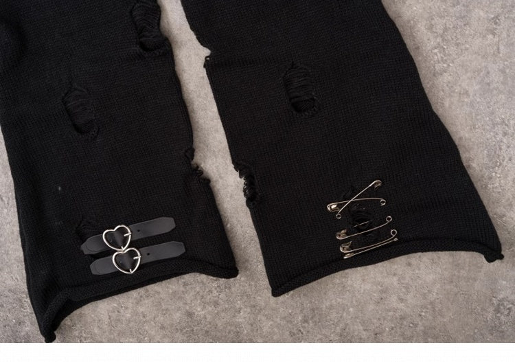 PU Buckles Gothic Black Distressed Holes Leg Warmers