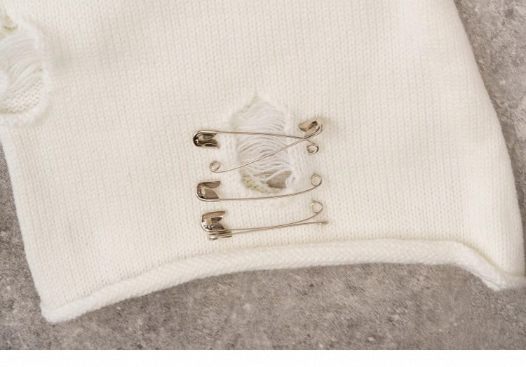 PU Buckles Gothic White Distressed Holes Leg Warmers