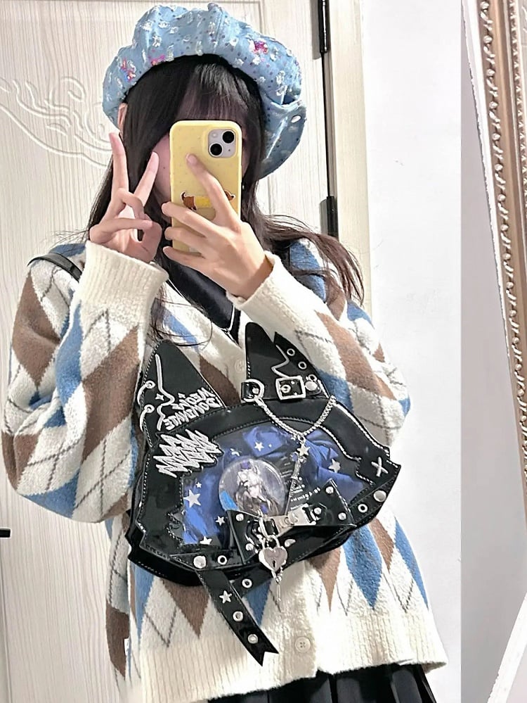 Bowknot and Studs Detail:The front of the bag is adorned with a sweet bowknot, complemented by chic stud details that add a hint of edgy sophistication. This combination ensures that the bag is both cute and stylish, suitable for various occasions.