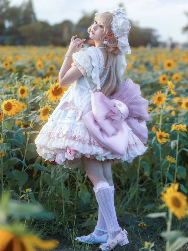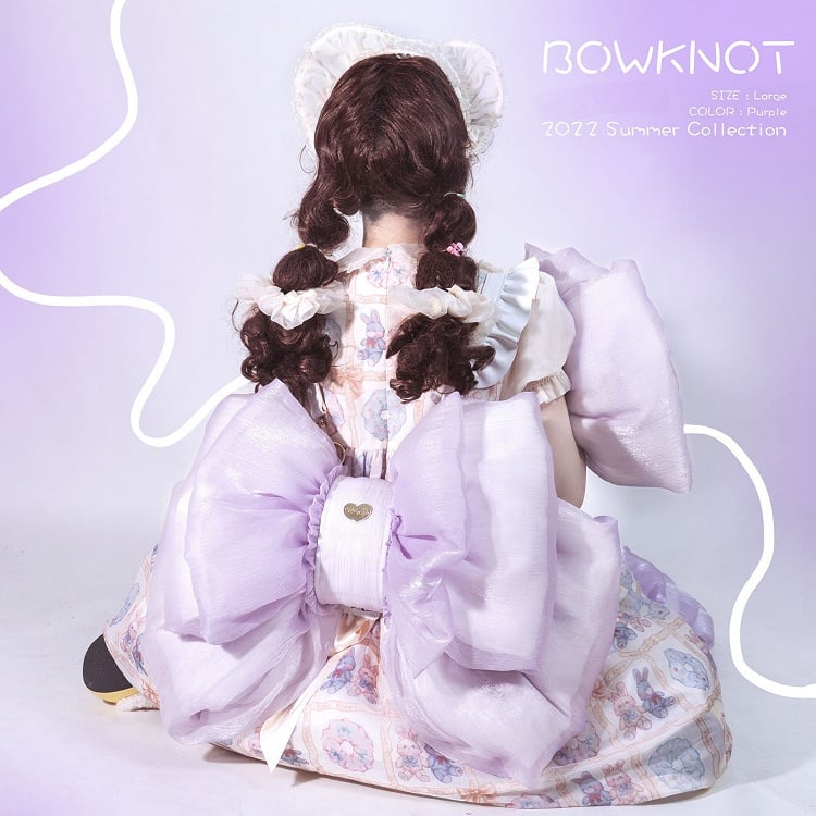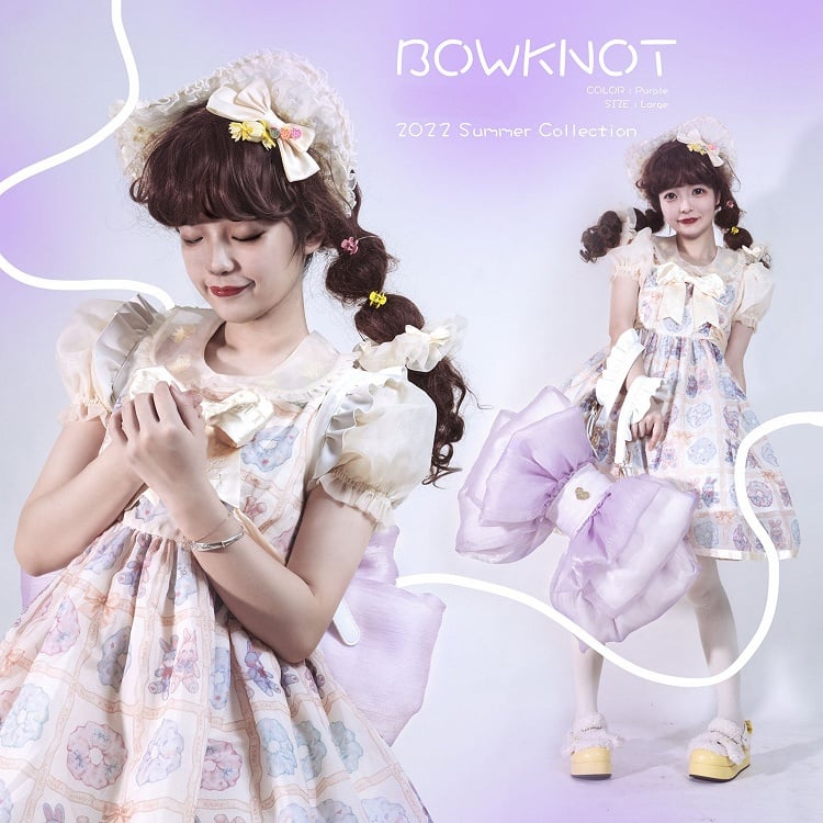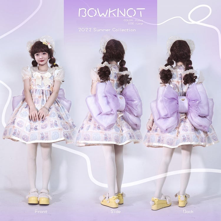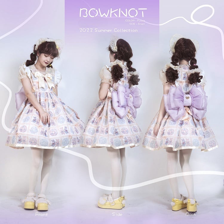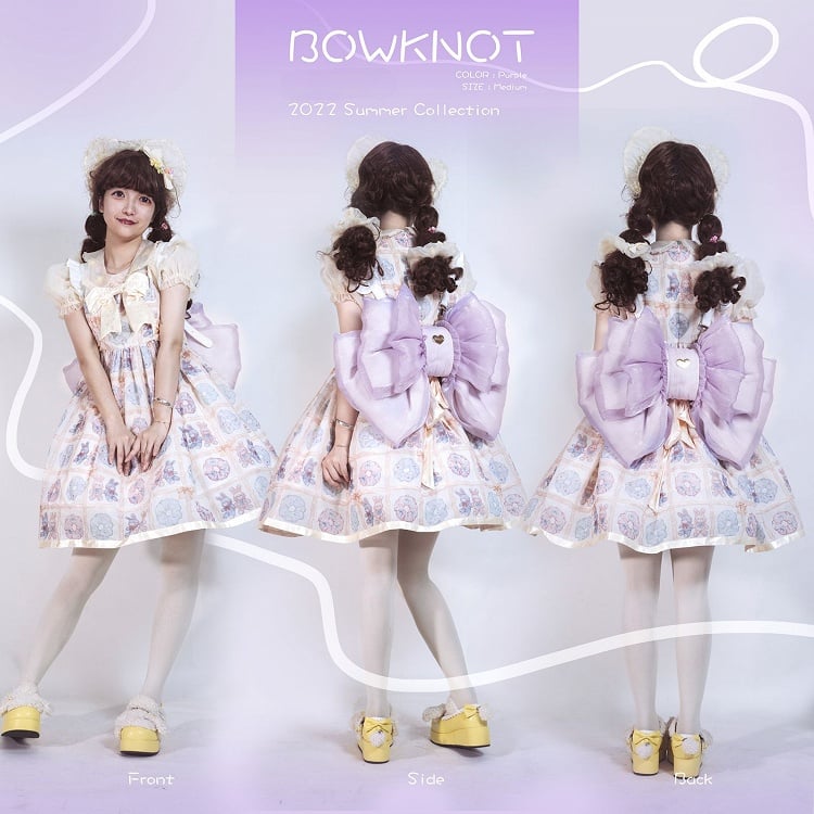 Cute big bowknot backpack. Only the mid part can put things in, with zippers in both sides, the bottom part is for keep the bag in shape, can't put things in.