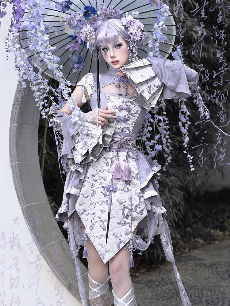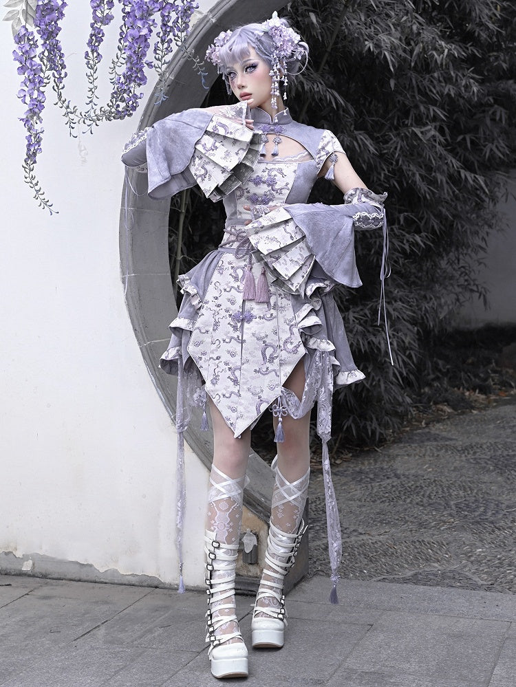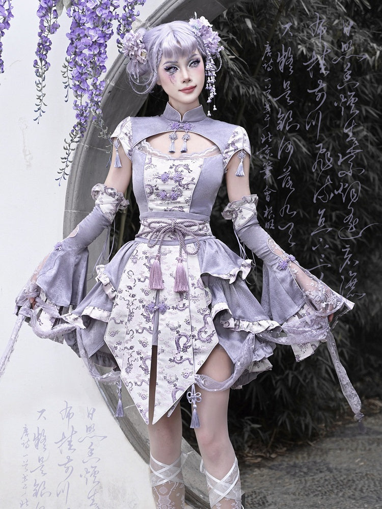 Purple Cheongsam Collar Short Sleeves Top Tassel Charm Decorated