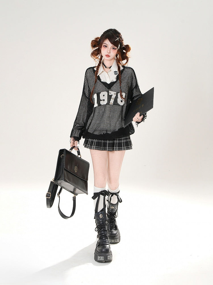 Dive into the world of bold fashion statements with this raw hem cover-up. Featuring a striking number print and eye-catching hollow-out design, this piece effortlessly combines edgy aesthetics with a touch of casual flair. Perfect for layering over your favorite outfits, it adds a unique twist to any ensemble, making sure you stand out in any crowd.