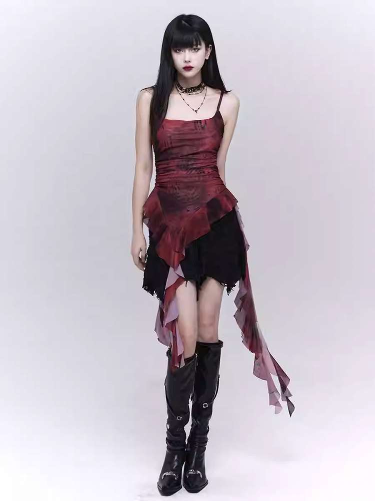 Red Asymmetrical Flounce Hem Glamorous Cami Top