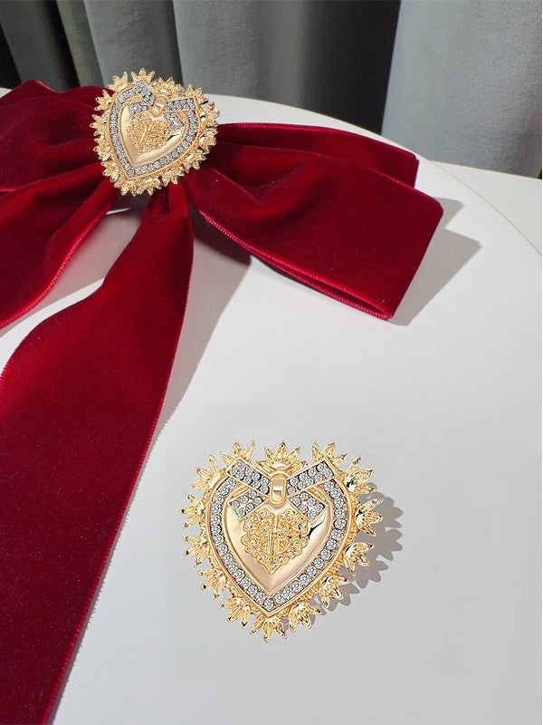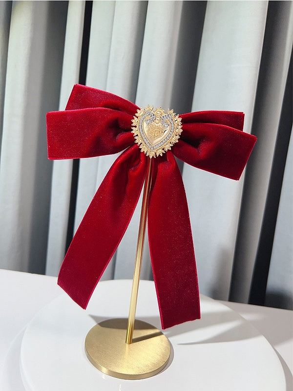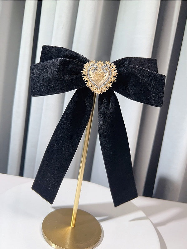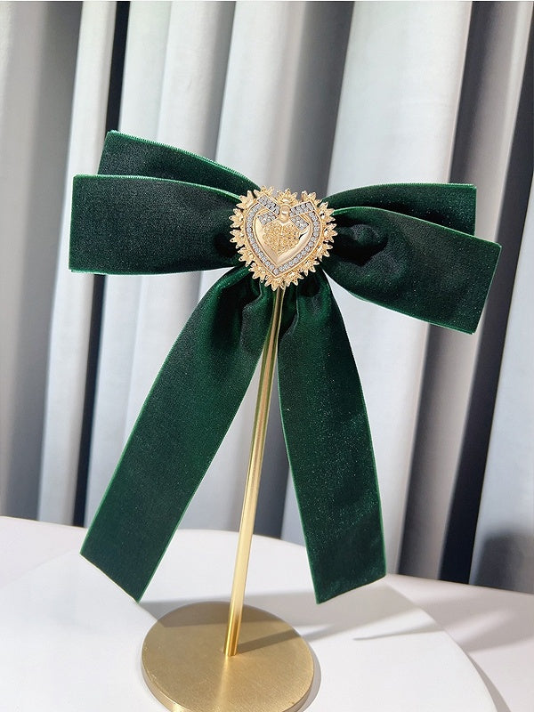 Red/Black/Green Bow Tie With Detachable Rhinestone Heart Brooch