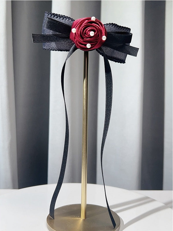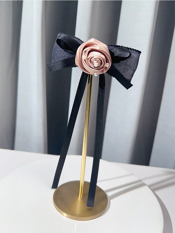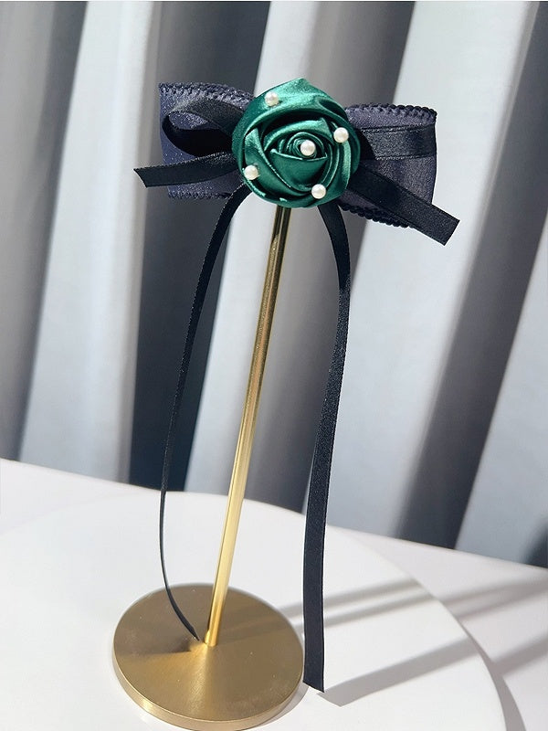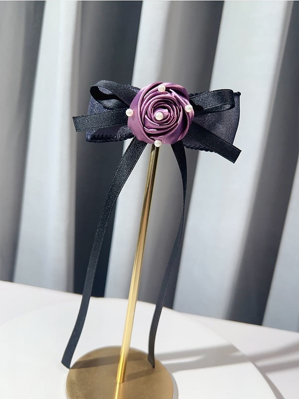 Red/Green/Purple/Apricot Beaded Decorated Rosette Design Bowknot Brooch
