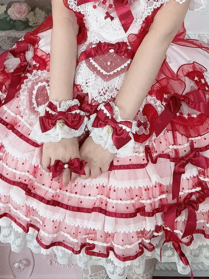 Red Heart Charm Striped Pattern Bowknot Wrist Cuffs