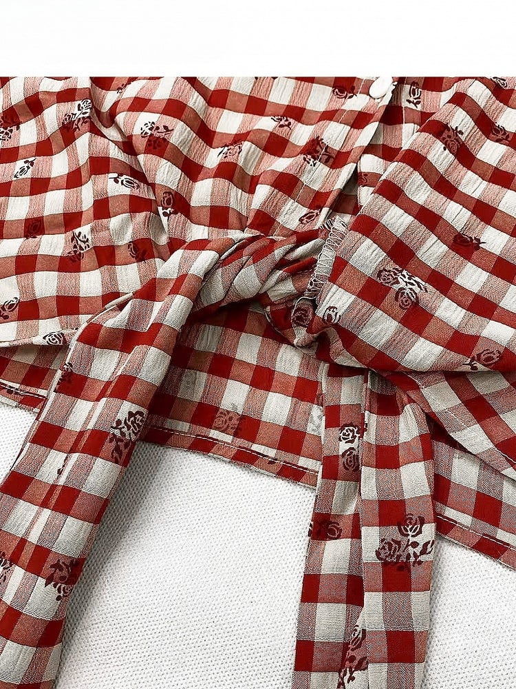 Dive into the world of bold fashion with this striking red plaid shirt, featuring unique twist details that add a touch of sophistication to a classic pattern. The rich red hue combined with the timeless plaid design makes it a versatile piece for any wardrobe, perfect for layering or wearing on its own.