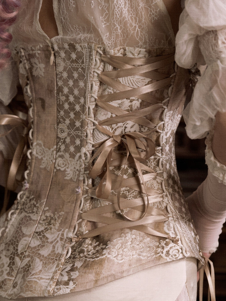 Rococo Illusion Lace Halter Neck Corset Top with Detachable Cascading Ruffle Accents