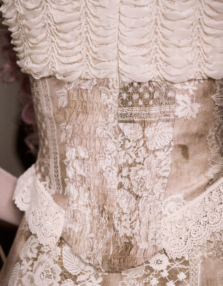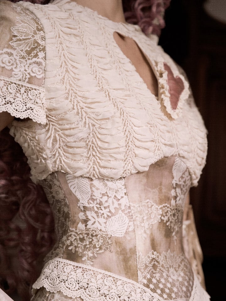 ● Crochet Lace Bodice / Cutout Detail / Hidden Zip at Back / Smocked Elastic at Back