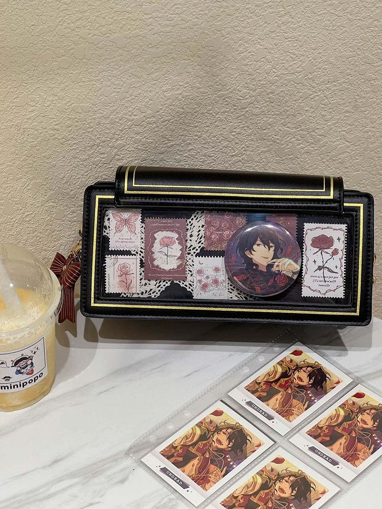 Rose Design Black Envelope Shaped Crossbody Ita Bag