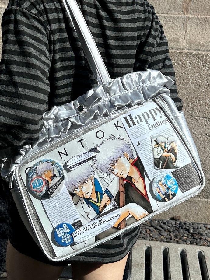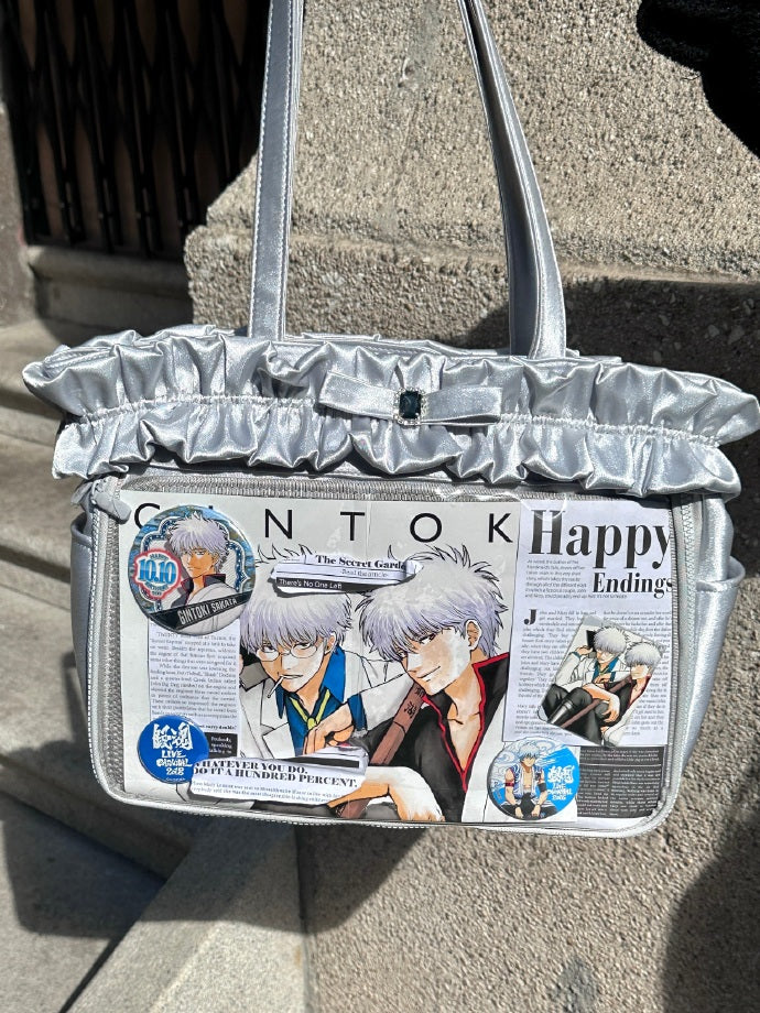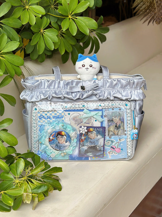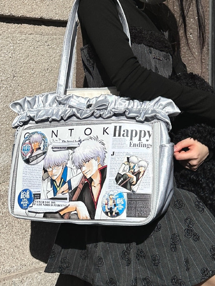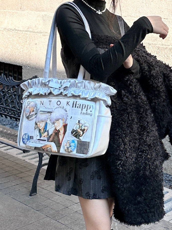 Silver Ruffle Trim Rhinestone Bowknot Large Volume Ita Tote Bag