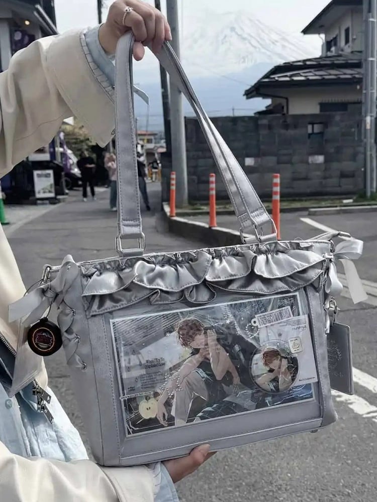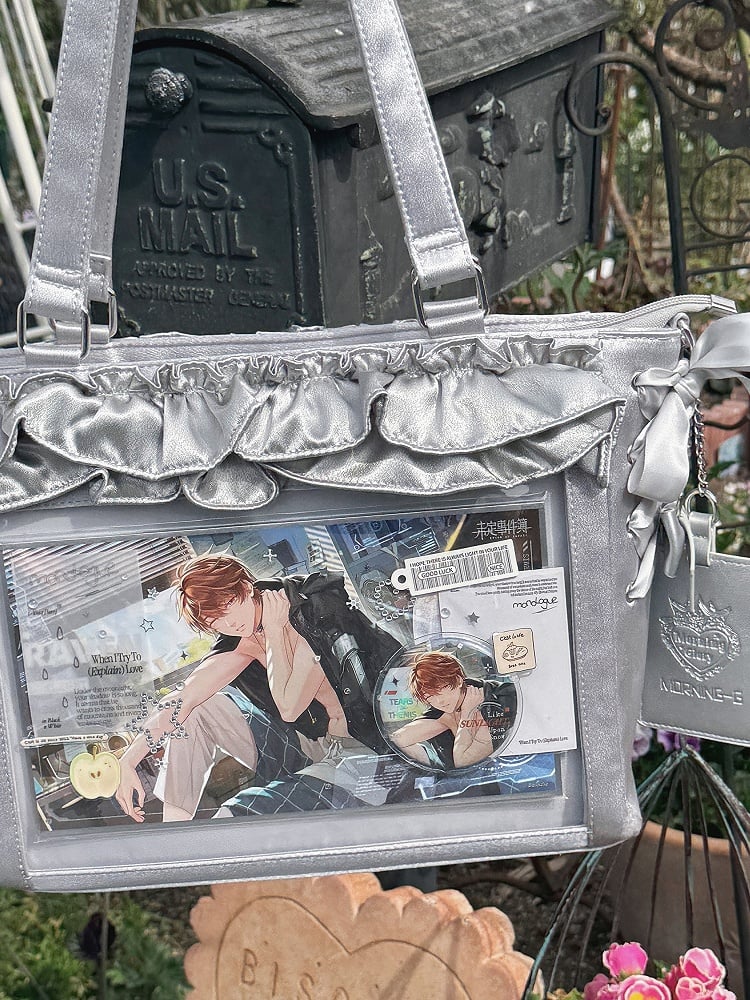Silver Satin Ruffle Trims Self-tie Straps Ita Bag With Bow Card Holder