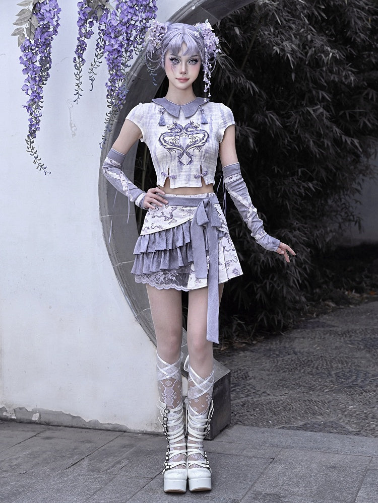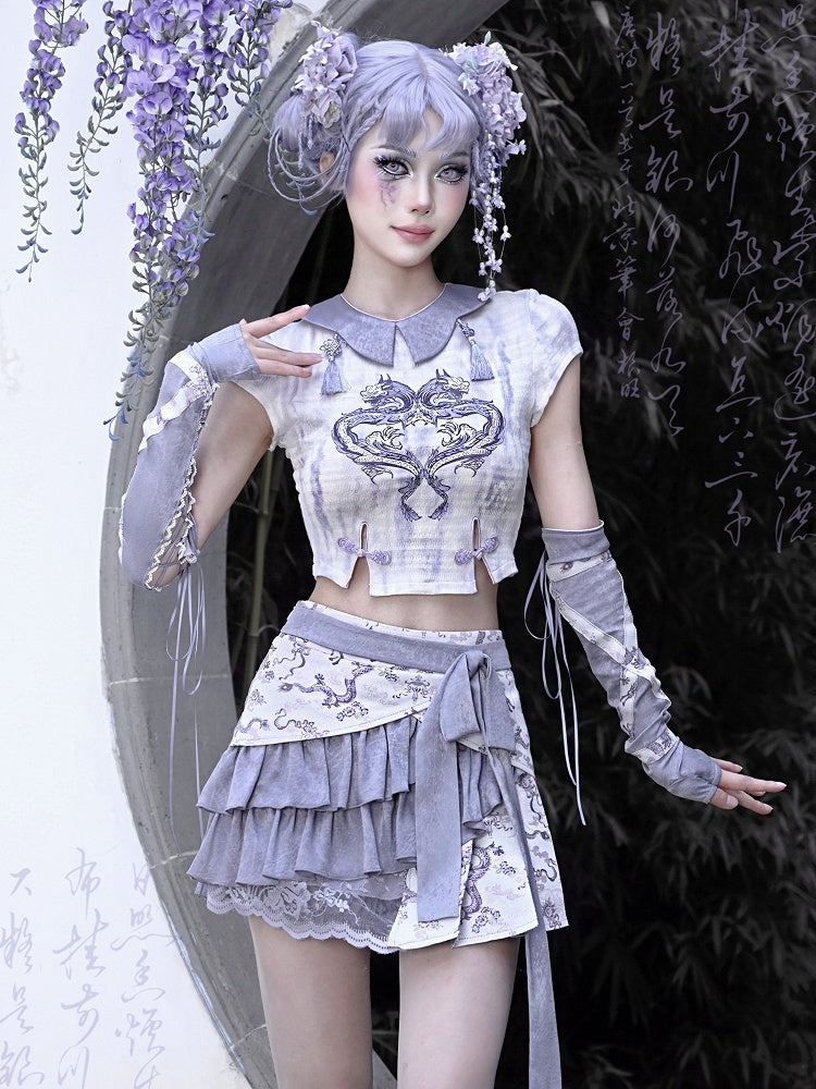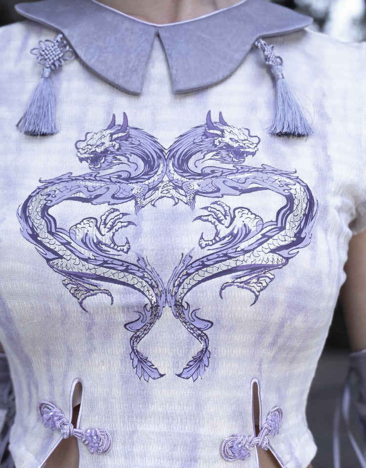 Summer Purple Dragon Print Tie Dye Knitted Cropped Top