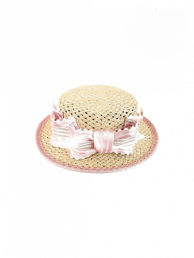 Sweet Lolita Straw Hat with Pink Bow Accent