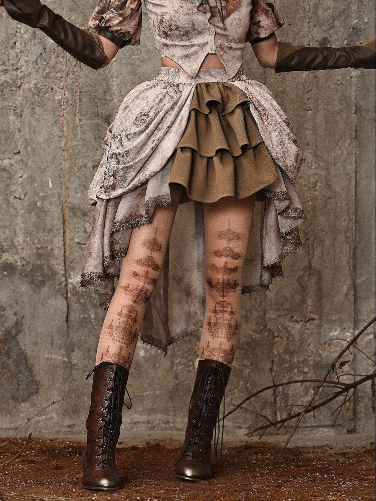 Tie Dye Jacquard Victorian Cascading Ruffle Trim High-low Skirt