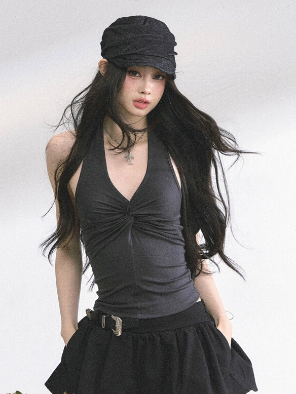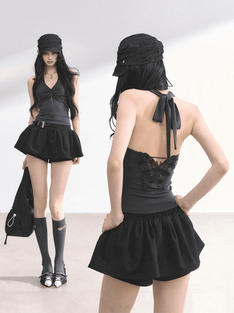 This exquisite halter top combines modern elegance with whimsical charm. Featuring a unique twist detail neckline, it adds a sophisticated touch to your outfit. The delicate lace butterfly appliqué enhances the top with a hint of playfulness and femininity, making it a perfect choice for those who love to embrace both style and grace.