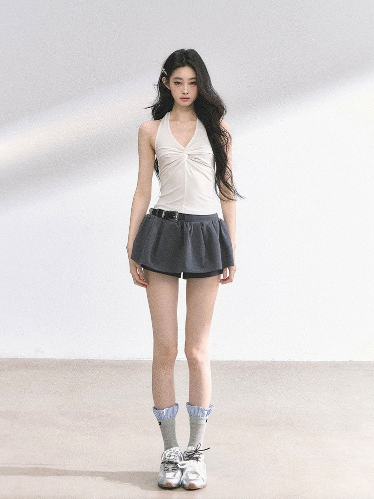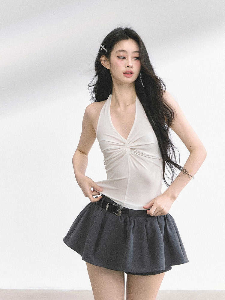 Twist Detail Neckline Lace Butterfly Applique White/Gray/Blue Backless Halter Top