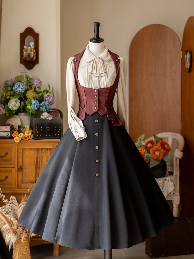 This sleek and tailored vintage-striped vest features a sharp, retro-inspired design. It boasts a unique lapel collar that adds a touch of classic sophistication, adorned with vintage buttons, enhancing its nostalgic charm. For a personalized fit, the back of the vest includes an adjustable feature, ensuring comfort and flexibility.