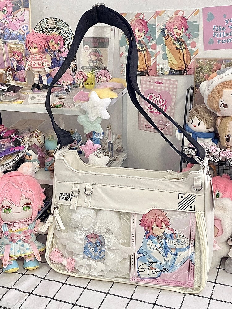 White Adjustable Strap Large Capacity Unisex Nylon Ita Shoulder Bag