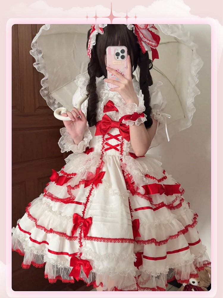 White and Red Sweet Bow Accents Princess Lolita Jumper Skirt