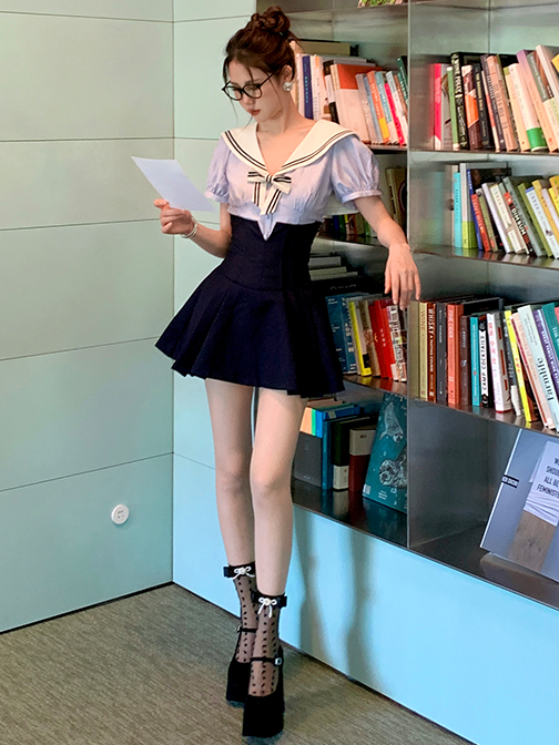 White/Apricot/Black/Grey Beaded Bowknots Socks