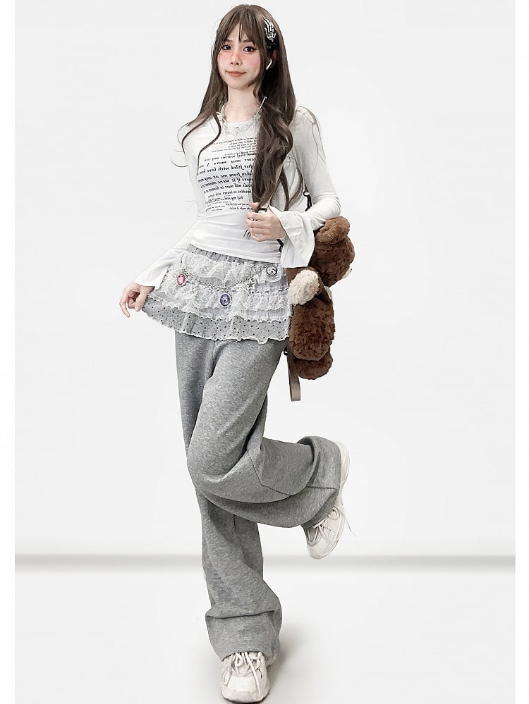 White Bittersweet Letter Print Asymmetrical Hem Bell Sleeves Top