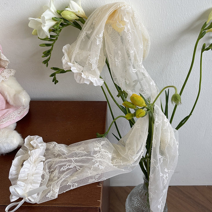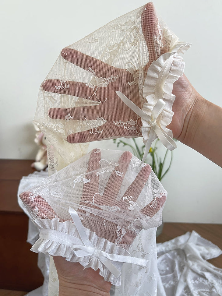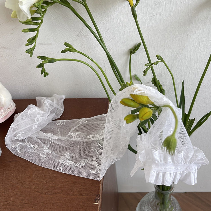 White/Black/Beige Rosette Lace Over-Knee Stockings