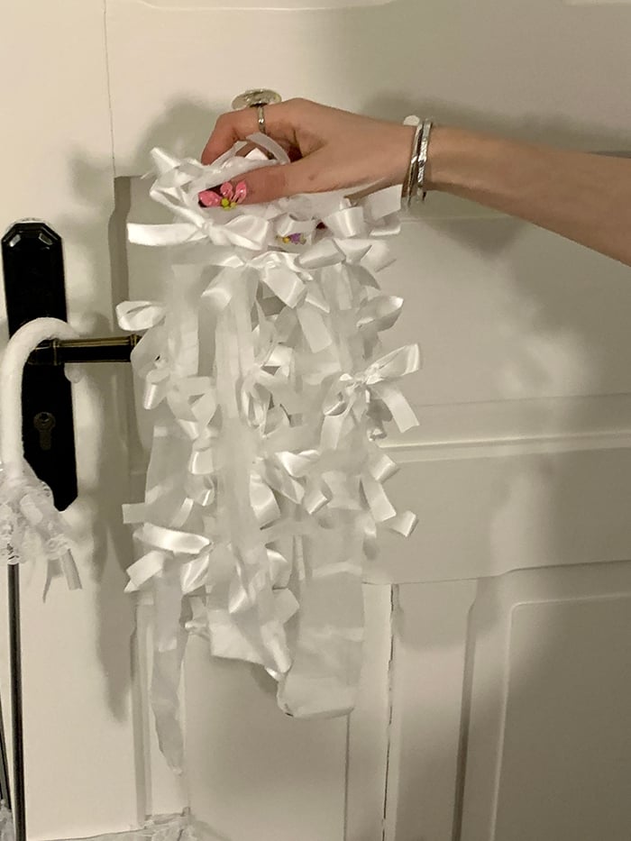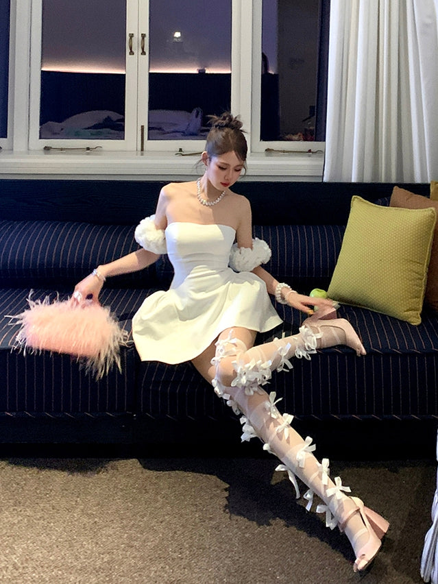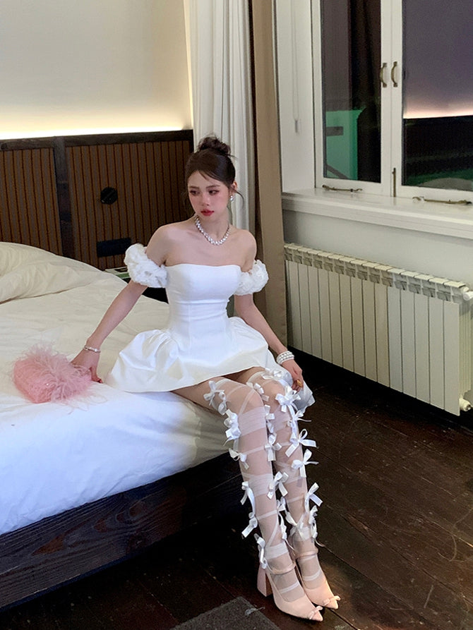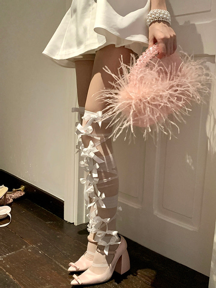 White/Black Crisscorss Banded Bowknot Details Over-knee Stockings