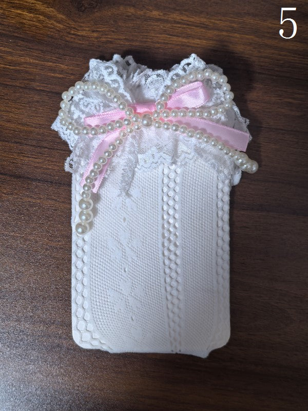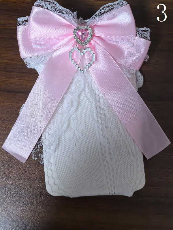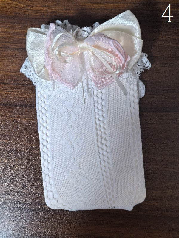 White/Black/Navy Blue/Grey Lolita Bowknot Details Hollow-out Calf Socks