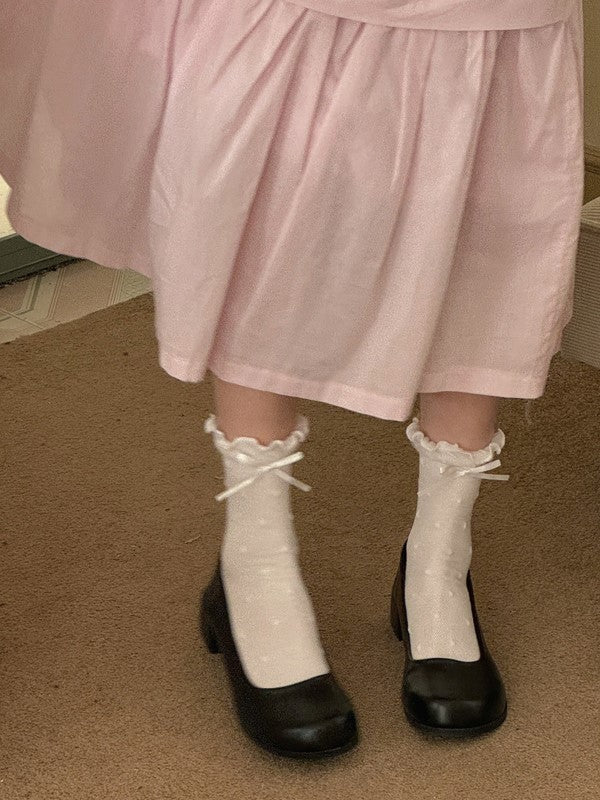 White/Black/Pink/Blue/Yellow Bowknot Details Polka-dot Pattern Ruffled Cuffs Calf Socks