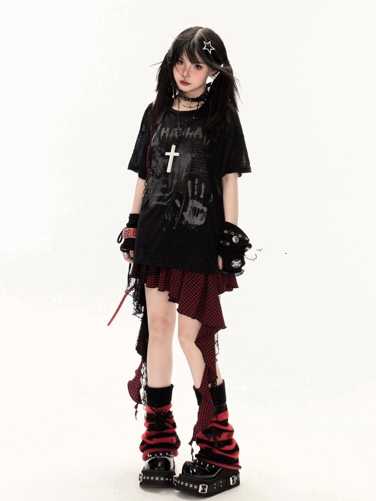 Unleash your inner rebel with this edgy Punk Print Round Neck Cover-Up. Perfect for adding a touch of attitude to any outfit, this versatile piece features a bold punk-inspired print that captures the essence of alternative fashion. Its round neck design offers comfort and style, making it an ideal choice for layering over your favorite tops or dresses.