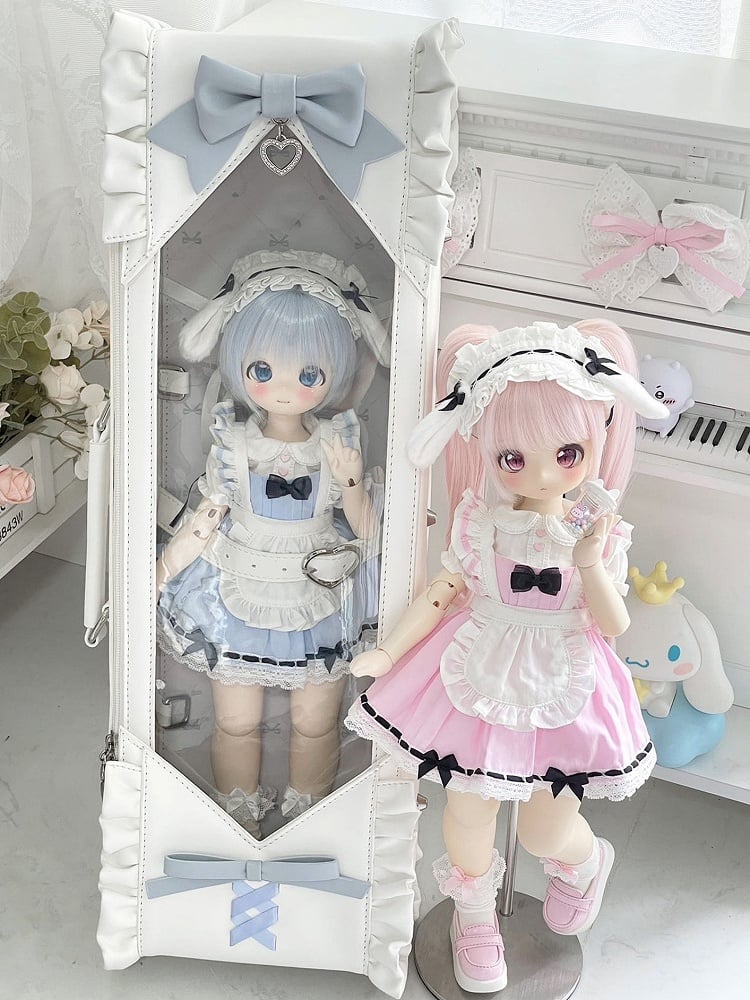 Elevate your BJD doll's style with this elegant 1/4 scale bag, designed to complement a wide range of outfits. Featuring a charming quilted pattern and delicate bow detail, this bag exudes a sophisticated allure. It comes with two adjustable shoulder straps, offering four versatile carrying options: handheld, single shoulder, crossbody, and backpack style. Perfect for adding a touch of kawaii charm or lolita elegance to your doll's ensemble, this bag is a must-have accessory for any doll collector.