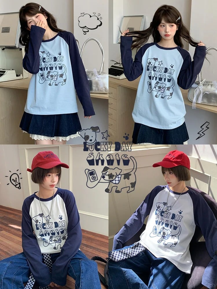 Embrace playful charm with our Colorblock Design Cute Puppy Print Top. This delightful piece features a vibrant colorblock pattern that adds a modern twist to classic kawaii style. The standout feature is the adorable puppy print, perfect for showcasing your love for all things cute and cuddly.