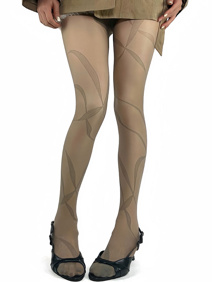 White/Brown/Black/Gray Y2K Ribbon Print Tights