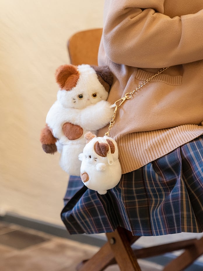 Elevate your kawaii fashion game with this irresistibly cute plush cat bag, perfect for both backpack and crossbody wear. Crafted in a charming white hue, this versatile accessory comes in three sizes to suit your style needs. The delightful cat design is complemented by a matching keychain, making it a must-have for any cat lover or kawaii enthusiast. Whether you're heading to a casual outing or a themed event, this bag promises to be your purr-fect companion.