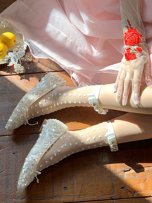 White/Grey/Black Rhinestone Bowknot Decorated Socks