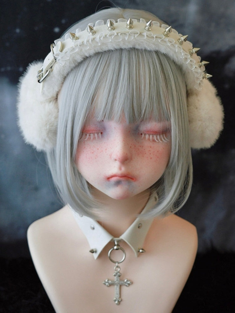This exquisite earmuffs is a perfect blend of edgy and cute, featuring a plush heart design adorned with hand-applied studs and pins. The soft white material adds a touch of elegance, while the unique embellishments bring a punk-inspired twist. Perfect for adding a statement piece to your lolita or kawaii outfit, this earmuffs is both comfortable and eye-catching, making it an essential accessory for those who love to stand out with their fashion choices.
