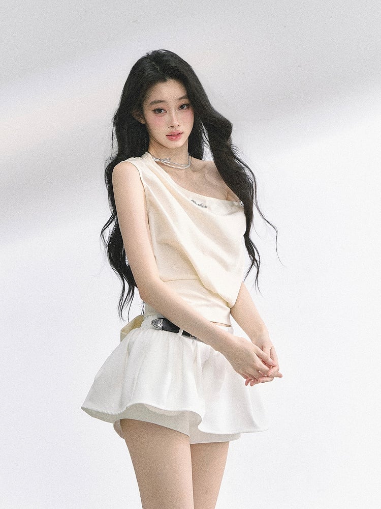 White/Navy Blue/Black/Gray Mini Skirt with Waist Belt