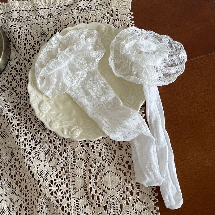 White/Pink Floral Pattern Lace Trim Socks