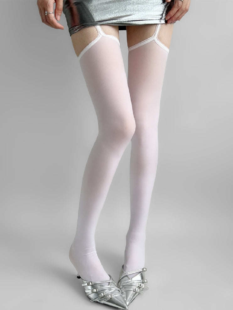 White/Purple/Gray/Black Lace Trim Suspender Stockings