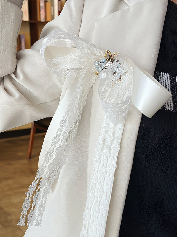 White Rhinestone And Beaded Decorated Bee Design Bowknot Brooch