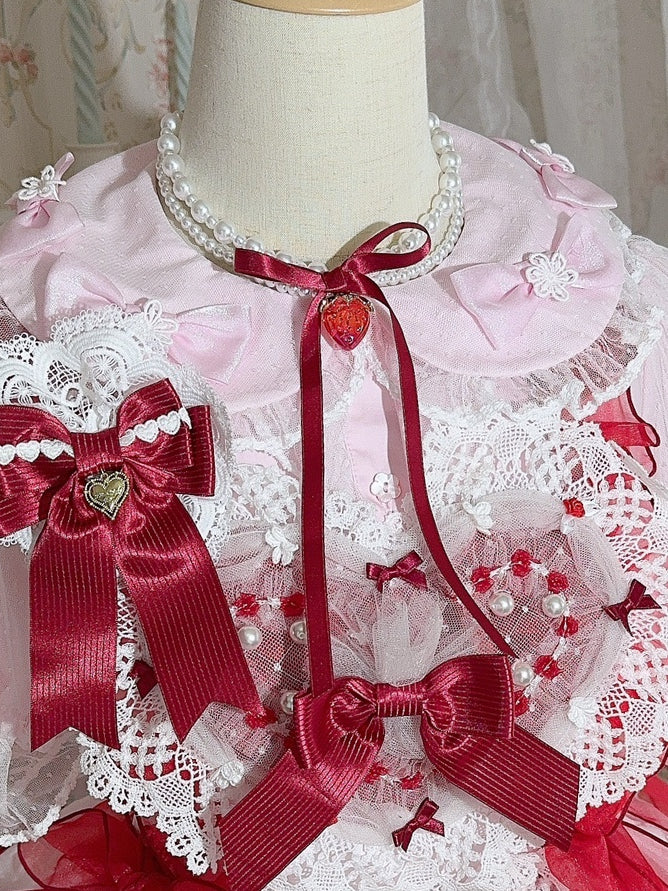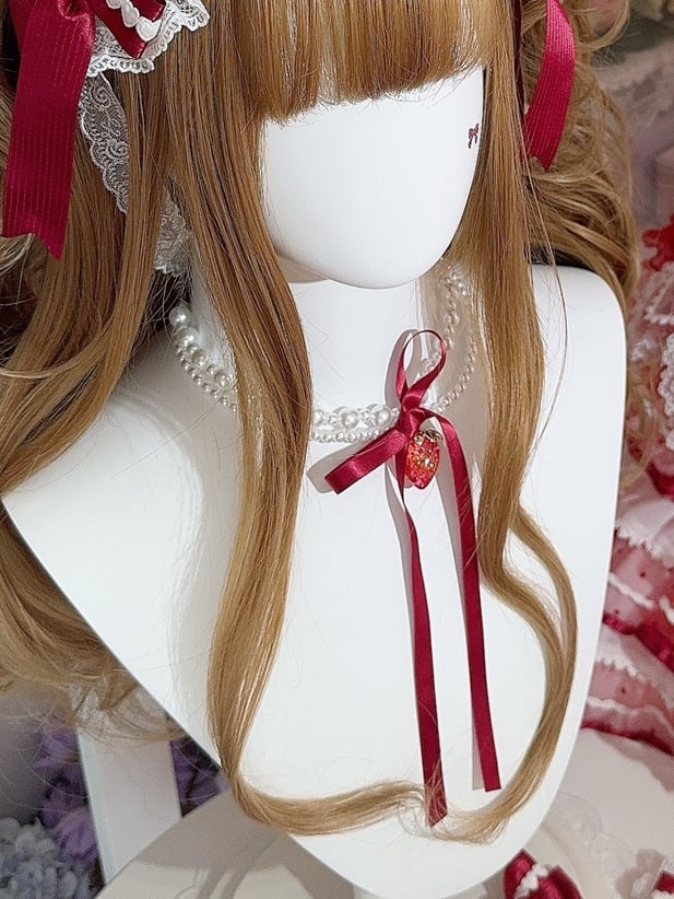 White Strawberry Pendant Beaded Necklace
