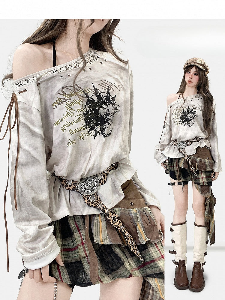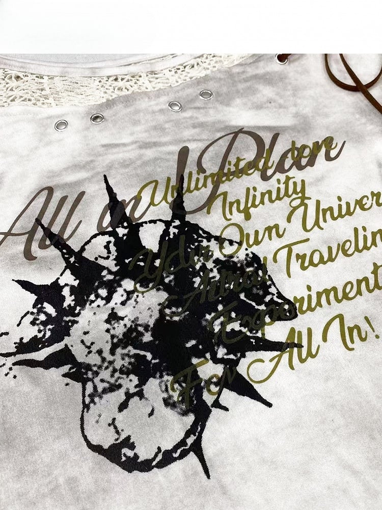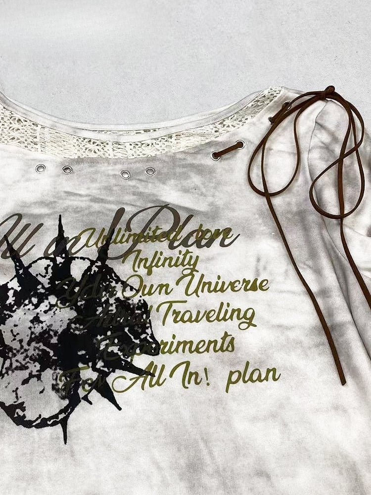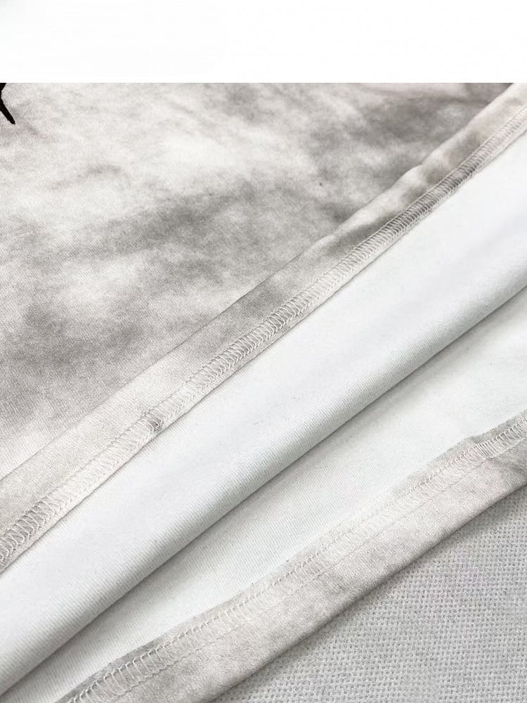 White Wasteland Punk Letter Print Self-tie Strap Tie Dye Design Sweatshirt