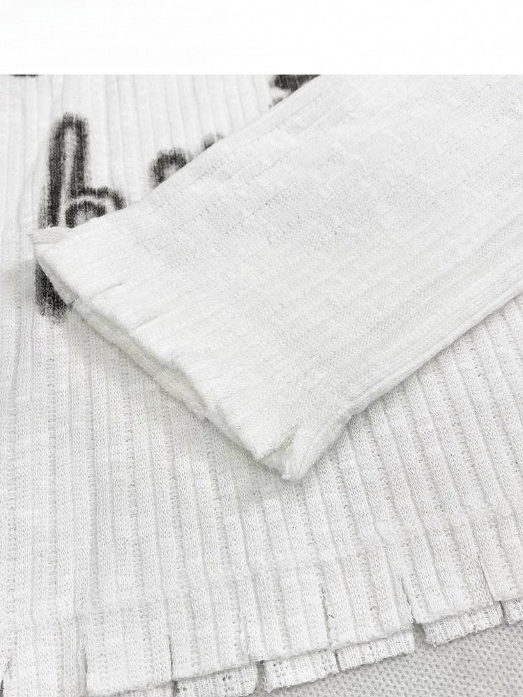 Unleash your inner fashionista with this Y2K-inspired long sleeve top, featuring an eye-catching irregular neckline that adds a touch of edgy sophistication. The crisp white fabric serves as the perfect canvas for the bold printed design, making a striking statement wherever you go. Complete with a complementary neck accessory, this ensemble effortlessly blends modern style with nostalgic flair, ensuring you stand out in any crowd. Perfect for those who love to embrace unique and trendy fashion.