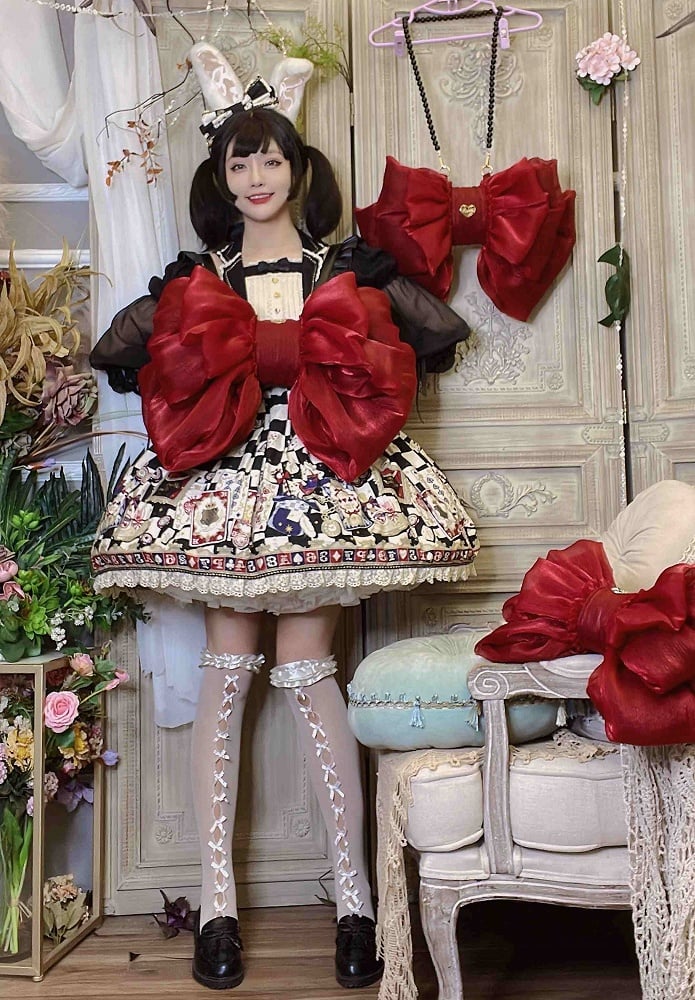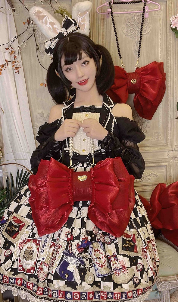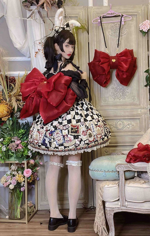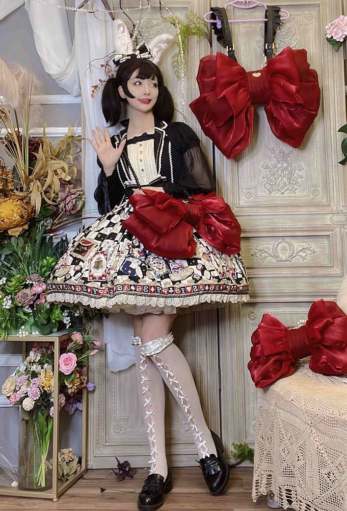 Cute big bowknot backpack. Only the mid part can put things in, with zippers in both sides, the bottom part is for keep the bag in shape, can't put things in.