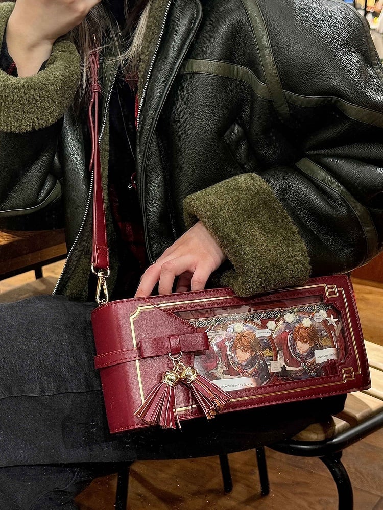 Wine Red PU Floral Pattern Cheongsam Style Ita Bag With Bow & Fringe Accent