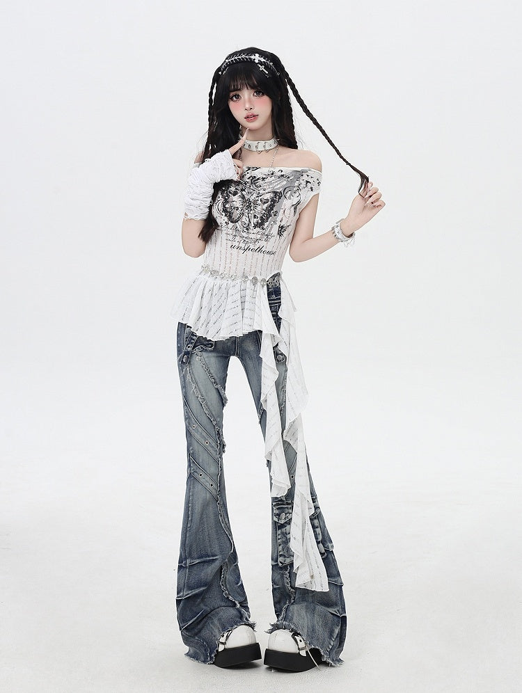 Elevate your casual wardrobe with these Low-Rise Raw Hem Faded Wash Flared Cargo Jeans. Designed for both style and functionality, these jeans feature a trendy low-rise fit that accentuates your silhouette. The flared design adds a touch of retro flair, while the faded wash gives them a cool, worn-in look.