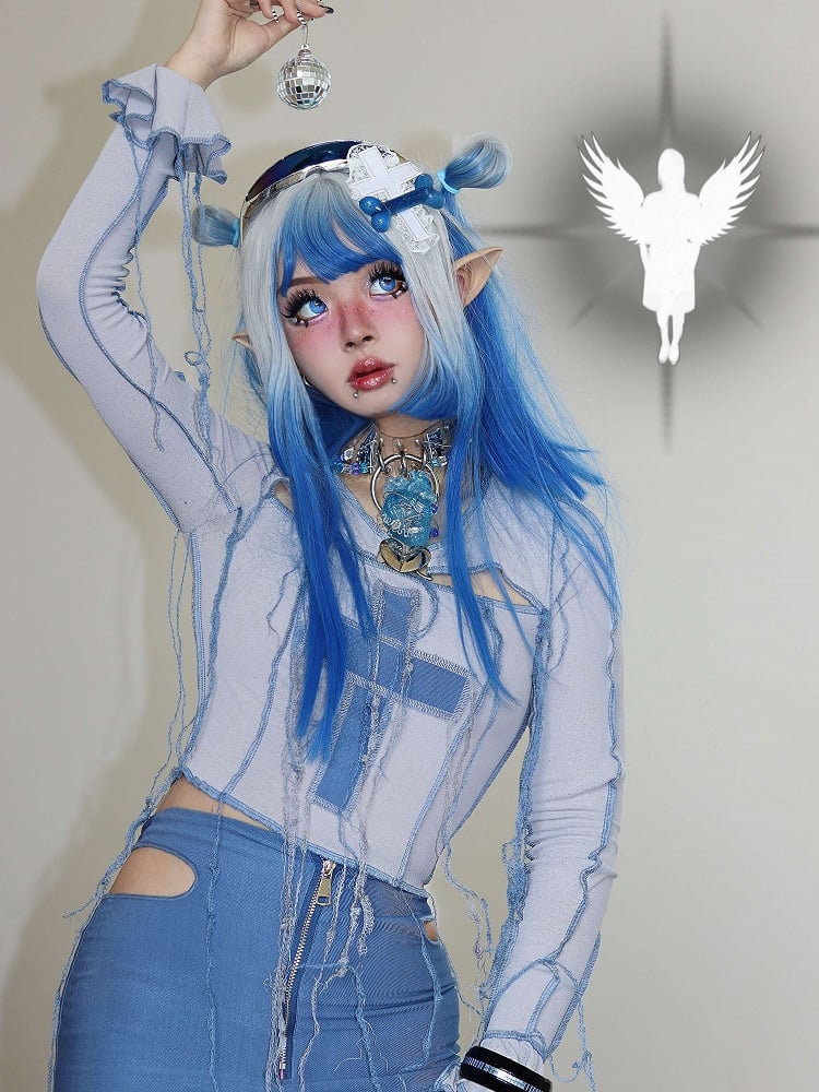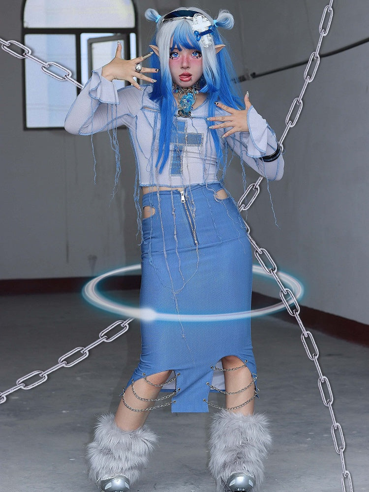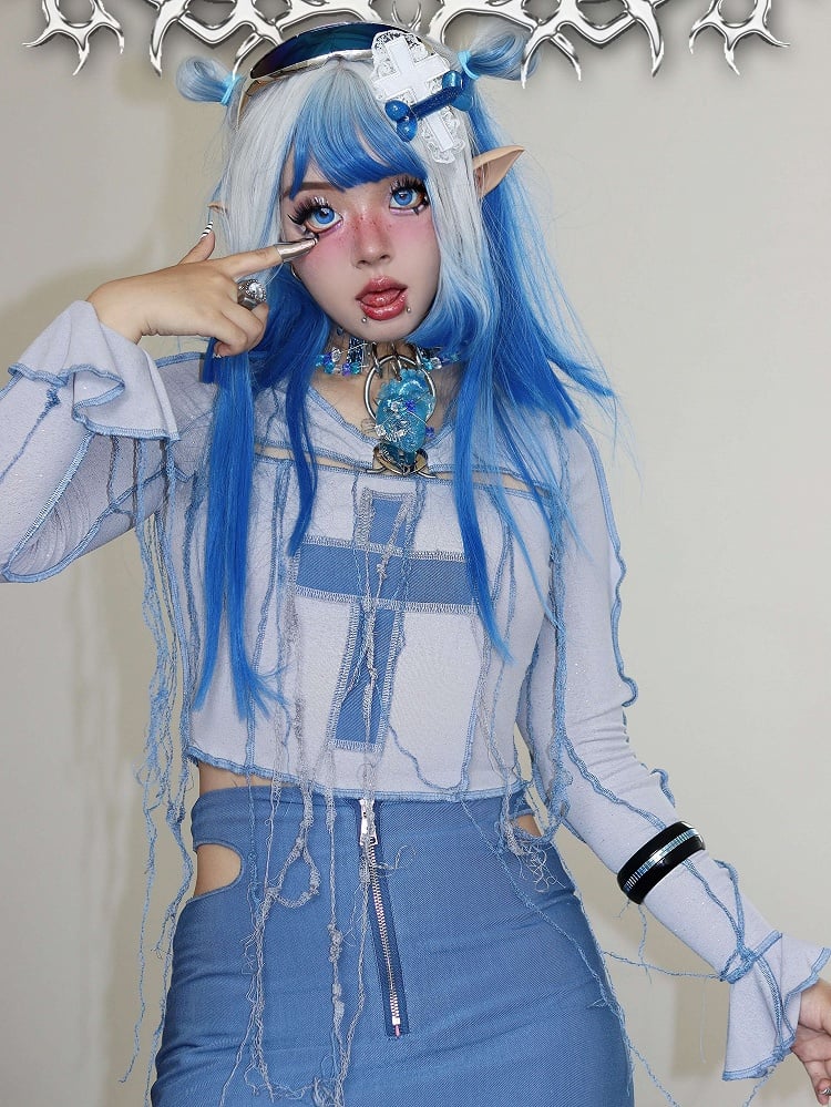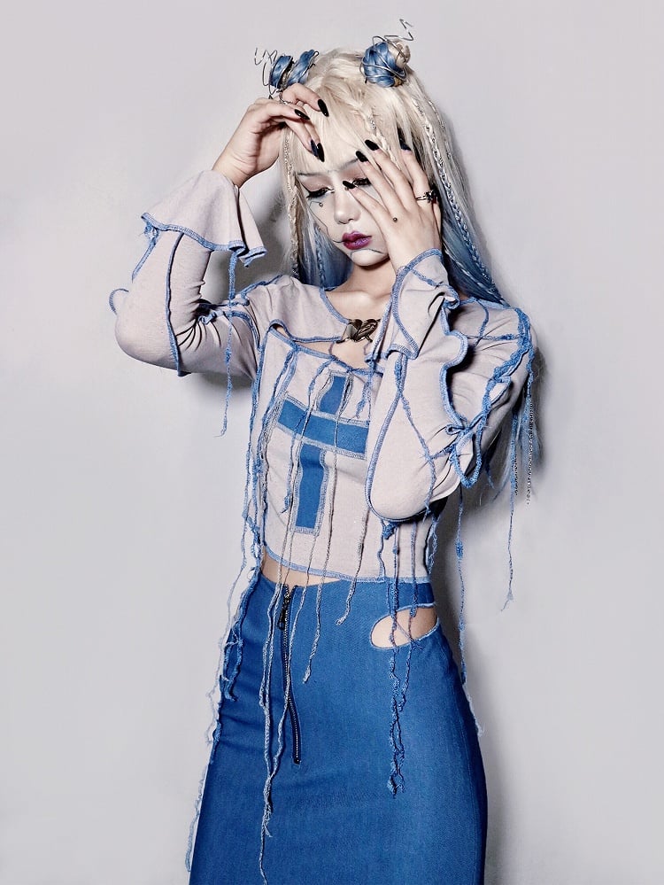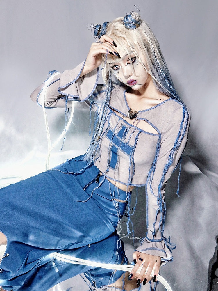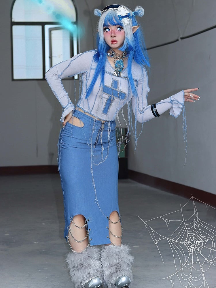 Y2K Cross Applique Tassels Bodice Knitted Top