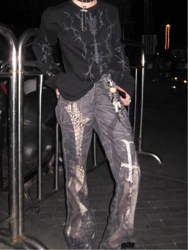 Unleash your inner rebel with our Y2K Punk Print Long Sleeve Top perfect for adding an edgy twist to your spring wardrobe. This shirt features a bold cross print that encapsulates the spirit of early 2000s punk fashion. Crafted from soft, breathable fabric, it ensures comfort while maintaining a stylish, form-fitting silhouette.